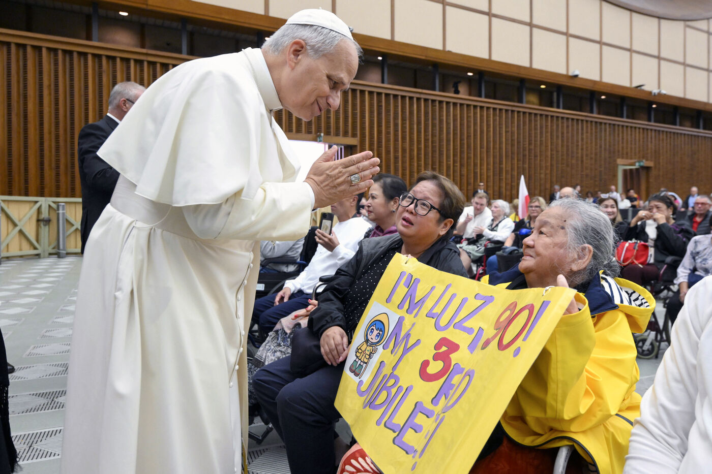 Pope Leo XIV addresses the crowd during a weekly general audience at St Peter's square in The Vatican on 2024/9/24.